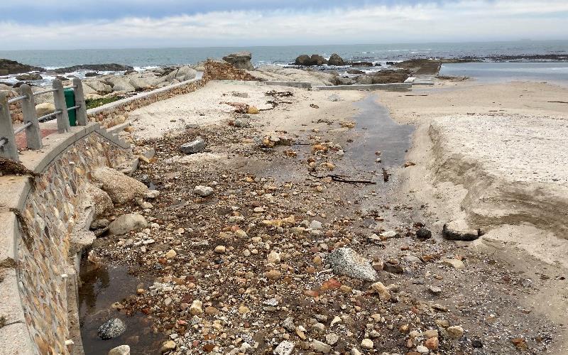 In the recent storms, the adjacent river flooded and washed away a significant portion of the northern section of the Camps Bay tidal pool beach, depositing a significant amount of sand in the near shore. This has resulted in a large sand bank that is impacting the functional space of the pool.
